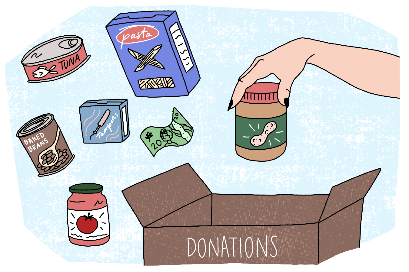 Donate food to less fortunate people in your neighborhood. You can volunteer at a local community center or soup kitchen. Another option is to cook or bake, make to-go plates, and bring them to friends and family.